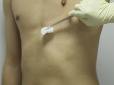 用酒精除去皮膚油脂,使其更好地附著。